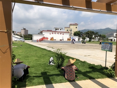 ■源城區埔前鎮上村村文化廣場綠草如茵,常有村民在這里休憩鍛煉。