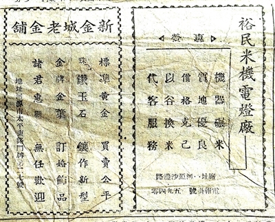 ■裕民米機(jī)在1948年10月的《正義日?qǐng)?bào)》上刊登的廣告,彼時(shí)河源城很多人家已用上了電燈。(原件現(xiàn)藏源城區(qū)檔案館)
