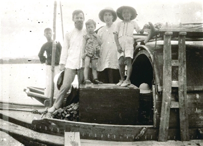 ■前往河源的傳教士一家在東江航船上。 攝于上世紀40年代