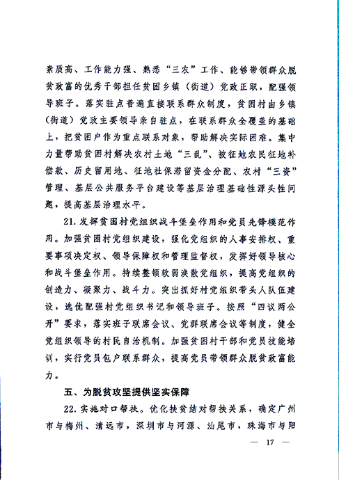 中共廣東省委 廣東省人民政府關于新時期精準扶貧精準脫貧三年攻堅的實施意見