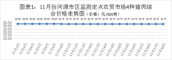 河源市發展和改革局的價格監測數據顯示:與上月比,11月份河源市區的豬肉價格輕幅回落,其它畜類、禽蛋、蔬菜、水產品、糧油價格總體穩定,個別品種價格現小幅波動。