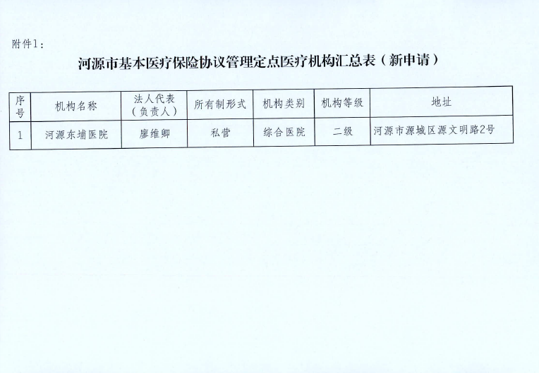 河源市社會保險基金管理局關于河源東埔醫院等醫藥機構申請定點協議管理的公示