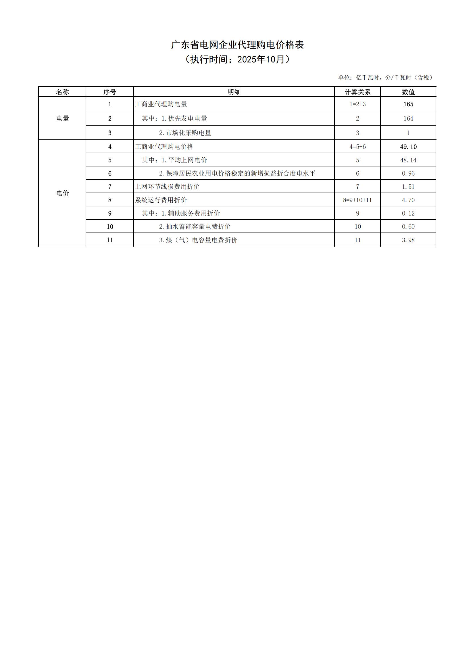廣東省電網企業(yè)代理購電工商業(yè)用戶電價表(粵北山區(qū))