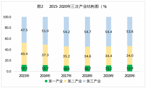 經(jīng)廣東省統(tǒng)計局統(tǒng)一核算,2020年河源地區(qū)生產(chǎn)總值(初步核算數(shù))1102.74億元,按可比價格計算,比上年增長1.3%。其中:第一產(chǎn)業(yè)增加值136.91億元,增長5.9%,對地區(qū)生產(chǎn)總值增長的貢獻率為49.9%,拉動地區(qū)生產(chǎn)總值增長0.7個百分點;第二產(chǎn)業(yè)增加值374.67億元,增長1.9%,對地區(qū)生產(chǎn)總值增長的貢獻率為53.6%,拉動經(jīng)濟增長0.7個百分點;第三產(chǎn)業(yè)增加值591.16億元,下降0.1%。三次產(chǎn)業(yè)結(jié)構(gòu)由上年的11.2:34.5:54.3調(diào)整為12.4:34.0:53.6,第一產(chǎn)業(yè)所占比重比上年提高了1.2個百分點,第二產(chǎn)業(yè)、第三產(chǎn)業(yè)所占比重比上年分別回落0.5和0.7個百分點。