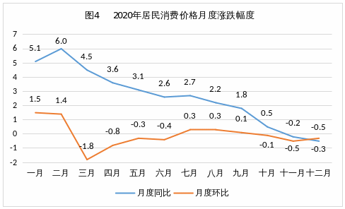 全年居民消費價格總水平(CPI)上漲2.6%,分類別看,食品煙酒類上漲9.4%,其他用品和服務(wù)類上漲3.9%,教育文化和娛樂類上漲2.1%,醫(yī)療保健類上漲1.5%,衣著類上漲0.8%,生活用品及服務(wù)類下降0.3%,居住類下降3.7%,交通和通信類下降4.2%。服務(wù)價格指數(shù)下降1.4%,商品零售價格上漲2.1%。工業(yè)生產(chǎn)者出廠價格下降0.3%。