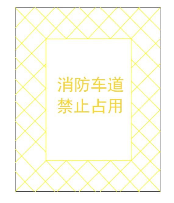 在單位或者住宅區(qū)的消防車通道出入口路面,按照消防車通道凈寬施劃禁停標(biāo)線,標(biāo)線為黃色網(wǎng)狀實(shí)線,外邊框線寬20厘米,內(nèi)部網(wǎng)格線寬10厘米,內(nèi)部網(wǎng)格線與外邊框夾角45度,標(biāo)線中央位置沿行車方向標(biāo)注內(nèi)容為“消防車道禁止占用”的警示字樣(示例見圖2);同時(shí)在消防車通道兩側(cè)設(shè)置醒目的警示標(biāo)牌(示例見圖3),提示嚴(yán)禁占用消防車道,違者將承擔(dān)相應(yīng)法律責(zé)任等內(nèi)容。