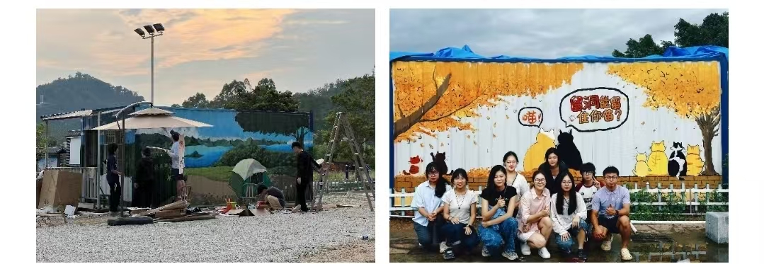 華南農業大學藝術學院“留光筑夢,洞見未來”突擊隊深入紫金縣古竹鎮留洞村,以藝術設計賦能鄉村振興。在墻繪創作中,團隊巧妙融合越王山丹霞地貌與客家文化元素,將閑置集裝箱打造成獨具特色的文化地標,為鄉村增添新的文旅亮點。在小學改造方面,提出“森林徒步游學營”方案,對3100㎡的廢棄校舍進行重新規劃與設計,將其改造為集研學、自然教育、游客服務等多功能于一體的研學基地,讓廢棄空間重煥生機。通過墻繪和小學改造兩大行動,團隊不僅提升了鄉村的美學價值,更為鄉村發展注入了創意活力,探索出了一條高校智力服務鄉村的新路徑,為留洞村的全面振興注入了強大動力。