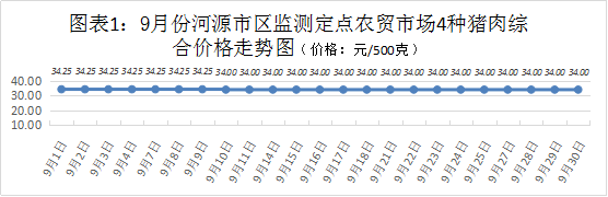 7個(gè)畜類(lèi)品種月均綜合價(jià)格42.3元(每500元,下同),環(huán)比微跌0.24%。豬肉零售價(jià)格于中旬輕幅回落后穩(wěn)定運(yùn)行(圖表1),4個(gè)豬肉品種月均綜合價(jià)格34.1元,環(huán)比跌0.29%,其中:排骨39.3元環(huán)比跌1.21%,精瘦肉37元、有皮上肉29元、肋條肉31元,環(huán)比持平。其它畜類(lèi)價(jià)格維持穩(wěn)定,如:牛肉55元、牛肉(腱子肉)60元、牛腩45元。