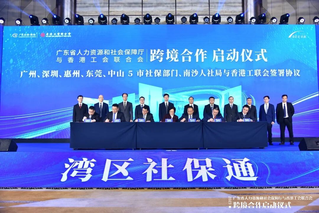 廣州、深圳、惠州、東莞、中山市社會保險基金管理局(中心)、廣州市南沙區人力資源和社會保障局與香港工會聯合會現場簽訂協議,在香港開設7個廣東社保服務點,為香港居民及在港居住的廣東參保人提供線上、線下社保業務,實現“足不出港”享受便捷服務。