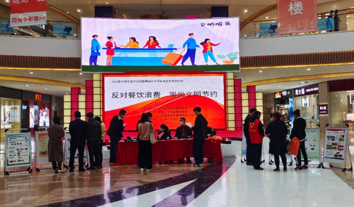 為深入貫徹落實習近平總書記關于制止餐飲浪費行為的重要指示精神,按照省、市有關制止餐飲浪費工作的要求和部署,3月25日,市市場監管局聯合源城區局在廣東堅基商業中心開展了“反對餐飲浪費崇尚文明節約”為主題的宣傳活動,通過形式多樣的宣傳倡導方式,進一步提高餐飲單位和公眾文明節約意識,營造社會良好氛圍。