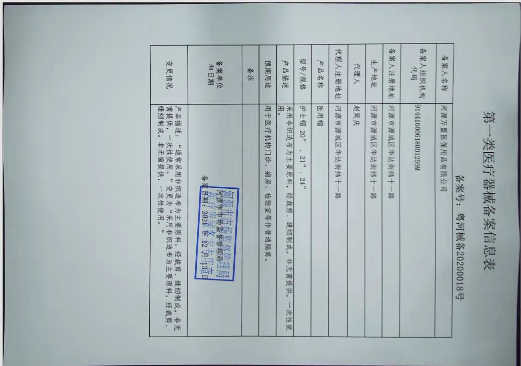 附件:第一類醫(yī)療器械備案信息表(9份)