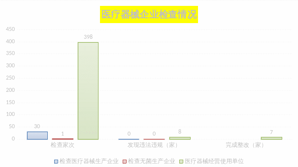 檢查醫療器械經營使用單位398家次,發現違法違規單位8家,已完成整改單位7家。通過檢查發現個別醫療器械使用單位涉嫌使用過期醫療器械,均依法移交稽查部門查處。日常檢查情況及發現違法違規企業情況詳見下表: