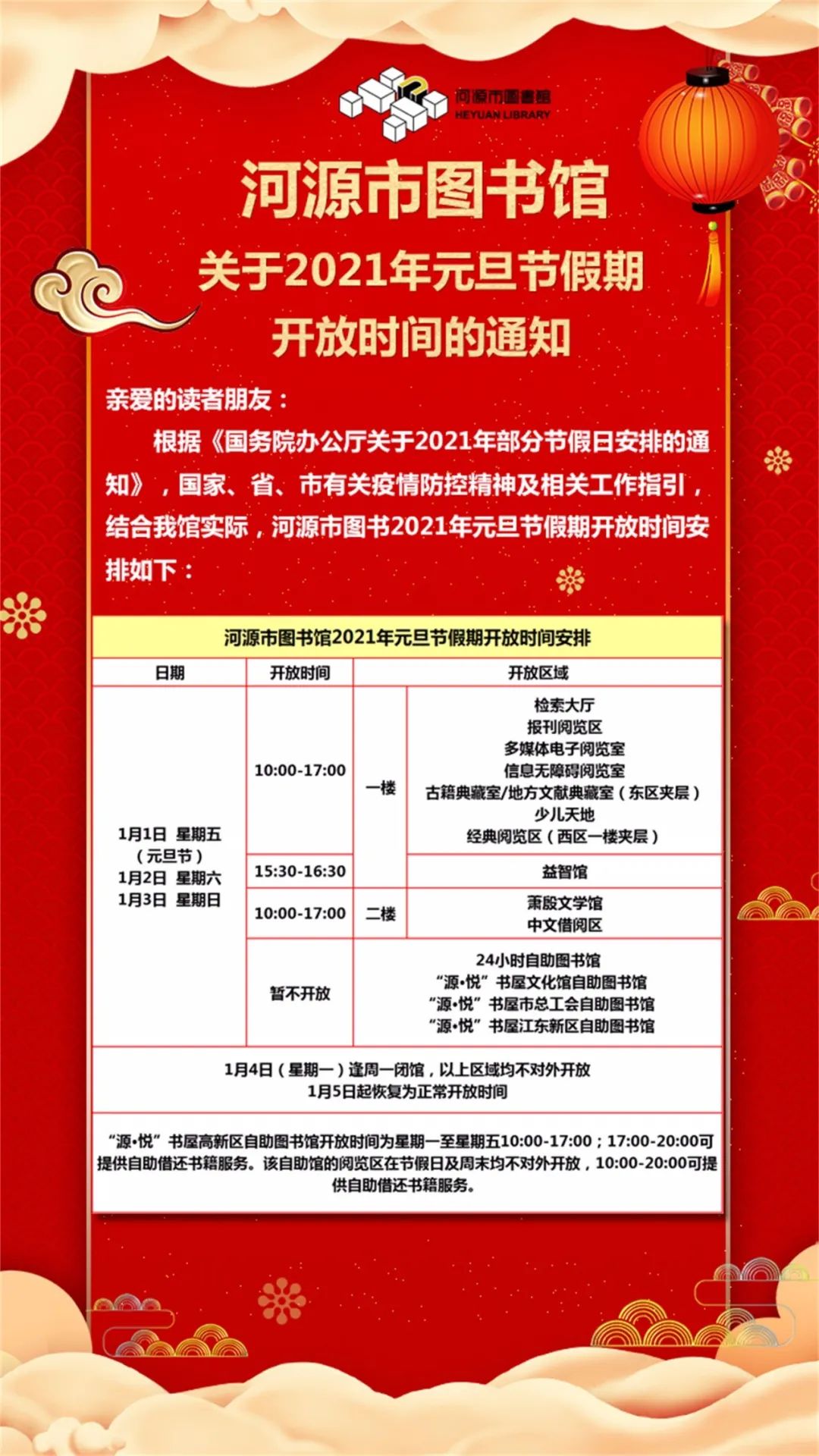 河源市圖書館關(guān)于2021年元旦節(jié)假期開放時(shí)間的通知