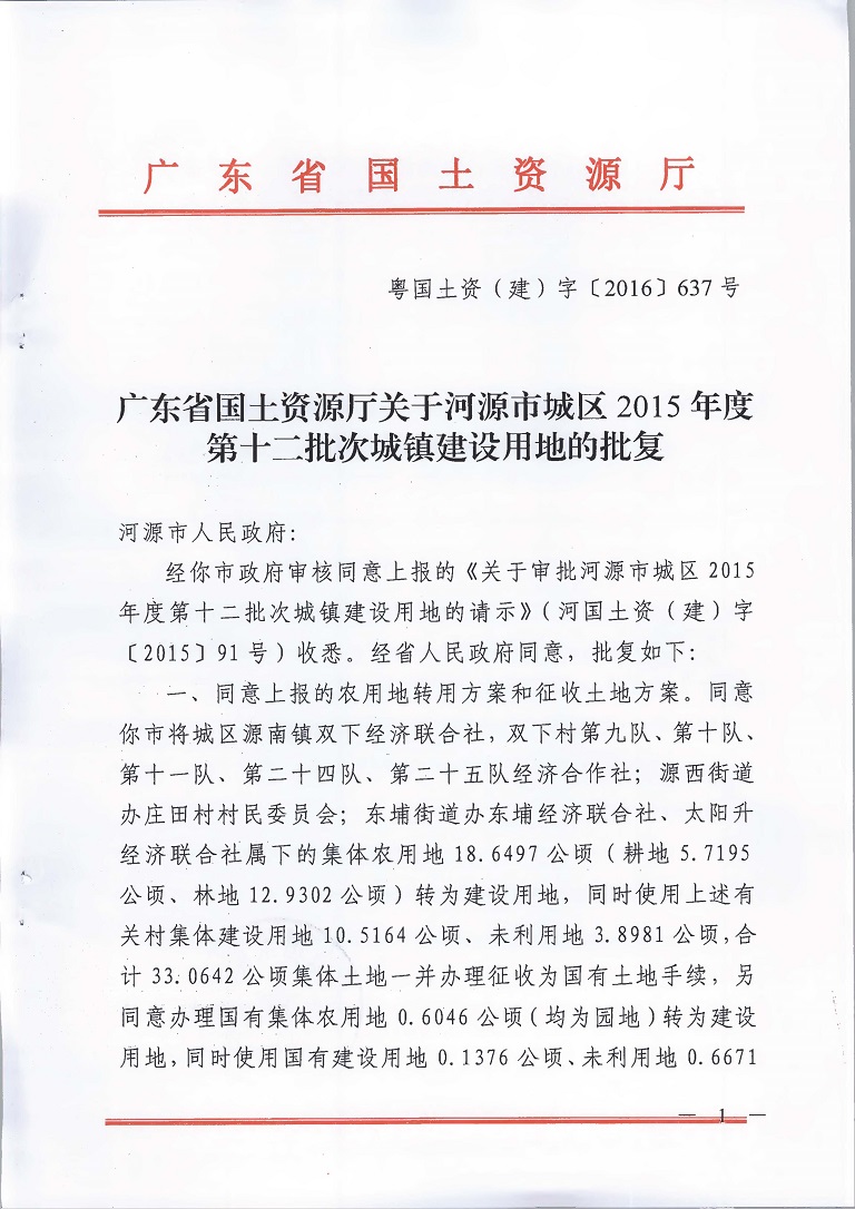 河源市城區(qū)2015年度第十二批次城鎮(zhèn)建設(shè)用地