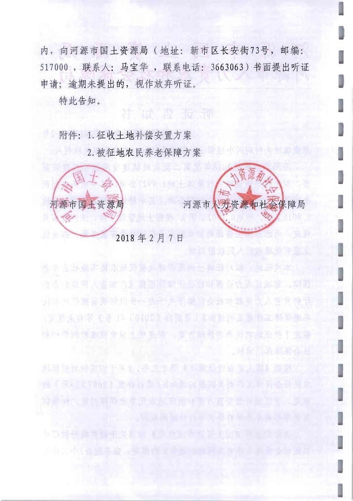 河源市人民政府關于河源市城區2018年第二批次土地征收聽證信息