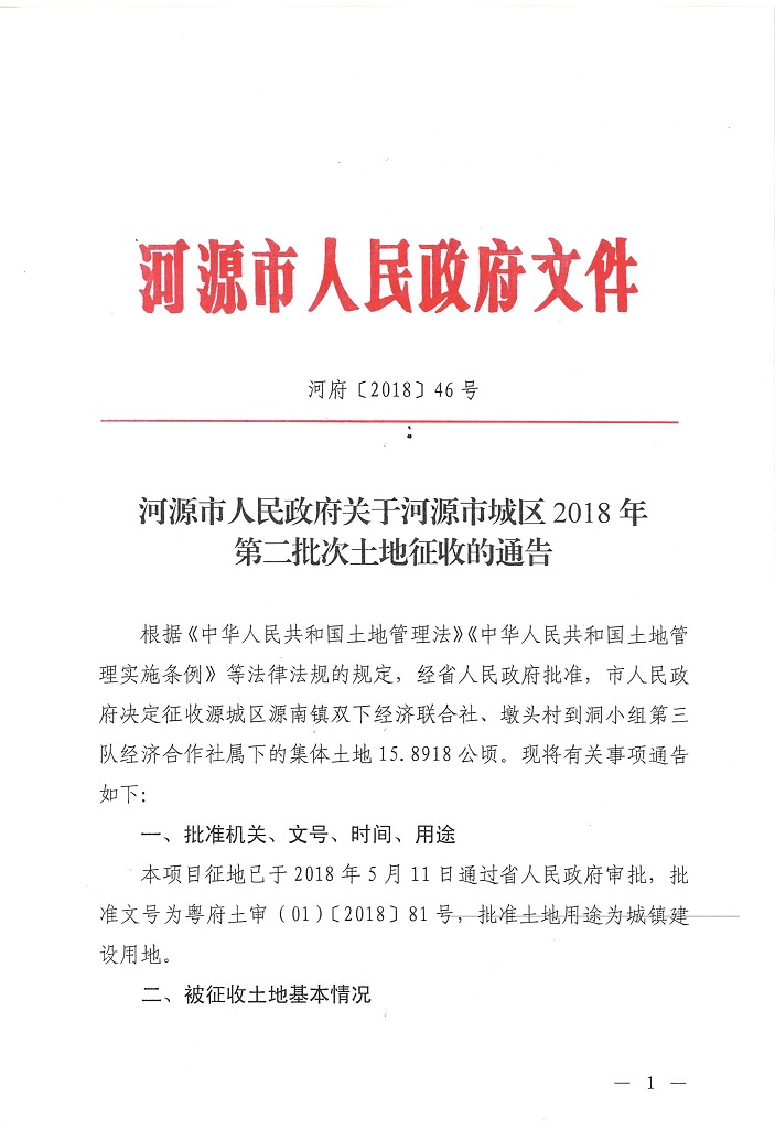 河源市人民政府關于河源市城區2018年第二批次土地征收公告
