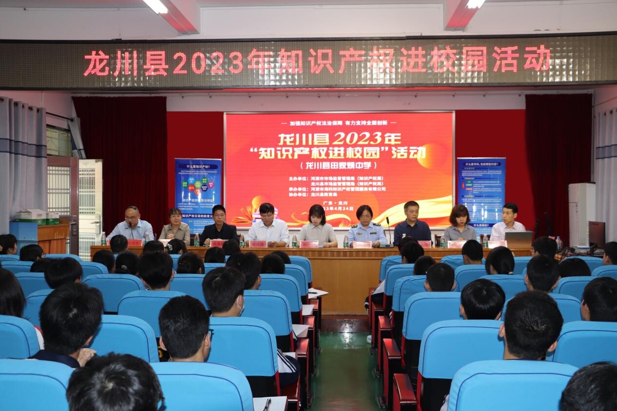 龍川縣市場監管局在龍川縣田家炳中學等三家學校舉辦知識產權進校園活動,活動為2022年新評定的河源市知識產權教育試點示范學校授牌,并贈送中小學知識產權教育書籍。活動還邀請了相關知識產權專家為在校師生開展知識產權基礎知識講座,激發學生學習知識產權的熱情。